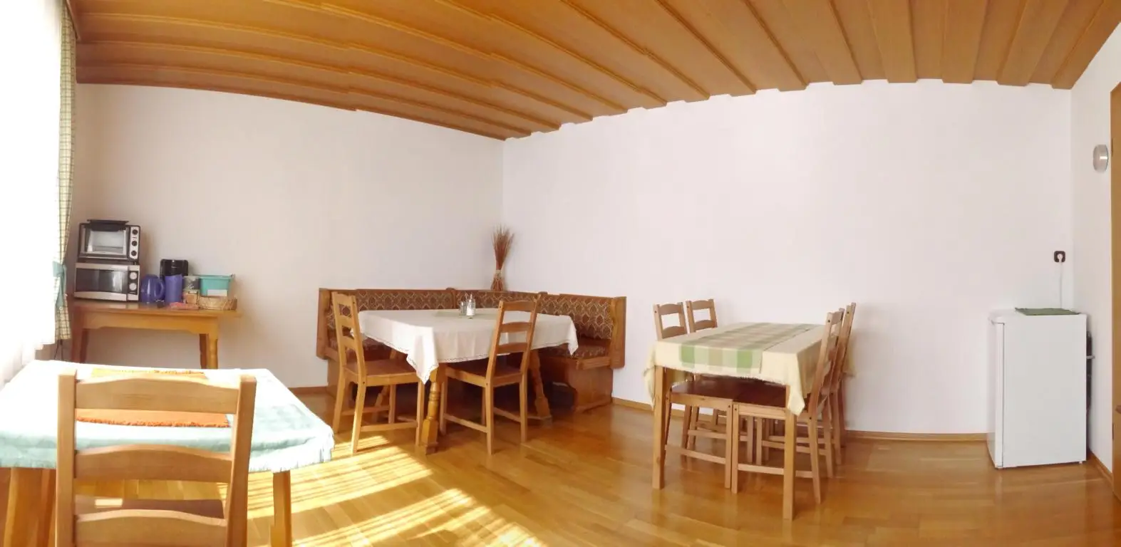 Für Übernachtungsgäste die als Selbstversorger in unserem Gästehaus wohnen steht ein Aufenthaltsraum mit Kühlschrank, Mikrowelle, kleiner Backofen, Kaffeemaschine usw. zur Verfügung.