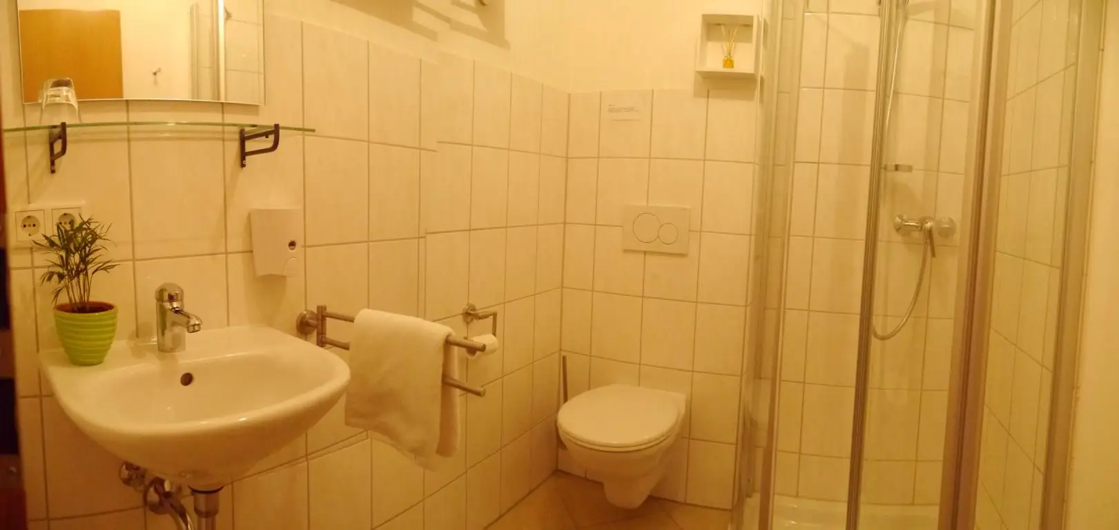 Jedes Gästezimmer ist hell und freundlich eingerichtet und mit DU/WC, TV, Fön und kostenlosem WLAN ausgestattet